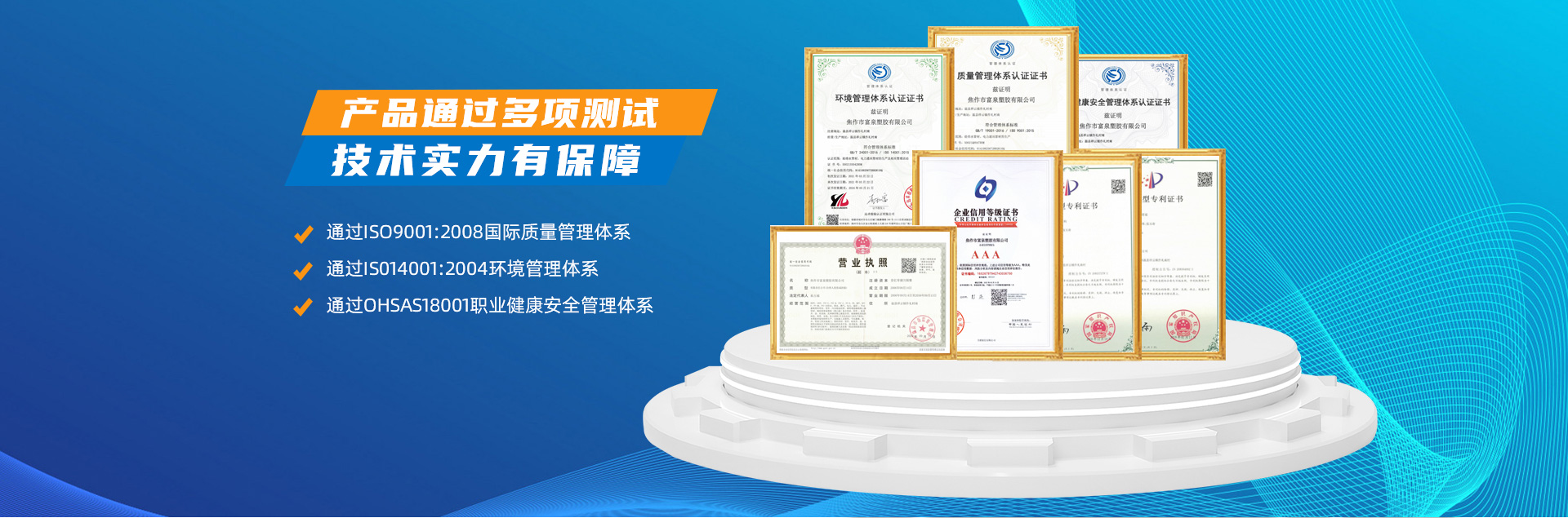 - 焦作市富泉塑胶有限公司,创立于1995年,是一家集研发、设计、生产、销售为一体的大型管材企业。公司位于太极故里、黄河之滨一一河南焦作温县。公司占地128亩,现有职工210余人,其中具有中技术职称的19人。生产、检验设备58台(套),包括PVC实壁管生产线11套、PE实壁管生产线12套、HDPE双壁波纹管生产线6套、PVC双壁波纹管生产线5套,检验设备14台(套)。主要产品有:Φ20mm-630mm、各种压力规格的PVCU、PVC-M、PE给水管材,PVC-U节水灌溉管材,HDPE燃气和矿用管材,DN200-800mm的HDPE、PVC双壁波纹管及各种喷灌、滴灌工程材料。承接大中型市政供排水、饮水安全及节水灌溉等工程?! 「蝗芙汗局厥硬返闹柿俊踩⒒繁:徒谀?,在同行业中率先完成了“新华节水产品认证”,全方面通过ISO9001:2008国际质量管理体系、IS014001:2004环境管理体系和OHSAS18001职业健康安全管理体系的一体化导入,并建立起规范的现代企业管理体系。公司以“质量”为先导,采用质量跟踪、多环节把关的方法,组建具有行业水准的企业技术检测中心,常年委托水利部节水灌溉设备检测中心、河南省产品质量监督检验院对产品跟踪检测,并由中国人民保险公司承保产品质量。公司连续多年被河南省水利厅确定为“安全饮水设备、节水灌溉设备”定点生产企业,并获得“中国名优产品”“质量、服务、信誉AAA企业”“河南省**产品”“河南省水利企业”“河南省守合同、重信用企业”等荣誉称号。 富泉塑胶公司坚持“用户为上”的服务理念,长期以来,全方面关注客户价值,不断提升服务水平。服务队伍常年为客户的产品设计、施工、安装提供合理的方案和全程细致、周到、**、快捷的技术服务。公司自成立以来,一直坚持以人为本的宗旨,塑造企业形象,并致力于新产品的开发,凭借雄厚的技术开发能力,先进的工艺制造流程,严格的质量管理保证体系,优良的售后服务网络,已成为河南省大的饮水、灌溉及排水管材设备制造商。产品畅销全国,而且还以公司雄厚的综合实力在业界中占据着重要的地位。